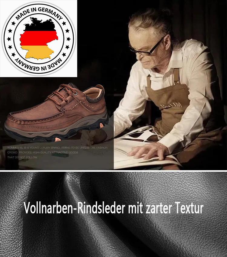 Echtes Leder 👞: Die hochwertige Leder-Oberseite bietet hervorragende Atmungsaktivität und Flexibilität, damit Ihre Füße trocken und bequem bleiben. Das Leder hält dem Verdrehen stand, verformt sich nicht und ist kratzfest, was Ihnen eine bessere Erfahrung in Bezug auf Haltbarkeit bietet.