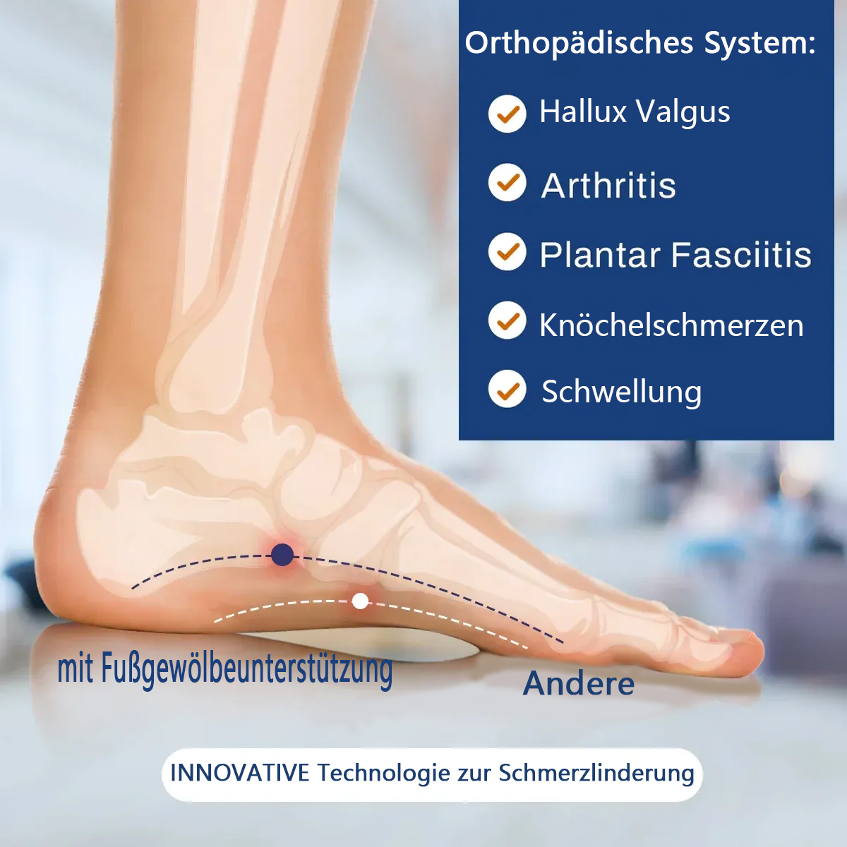 Die 2025 Orthorecover™ Orthopädischen Schuhe: Premium ORTHOPÄDISCHE EINLEGESOHLE mit verstellbarem BOOSTER FÜR DAS FUSSBÖGEN und mehreren DÄMPFUNGSLAGEN, die weiche, KISSENARTIGE UNTERSTÜTZUNG bieten und Wunder wirken, um KOMFORT zu erhöhen und SCHMERZEN im Fuß und in der Ferse zu lindern, bis hin zu deinen KNIE, HÜFTEN und dem UNTEREN RÜCKEN.