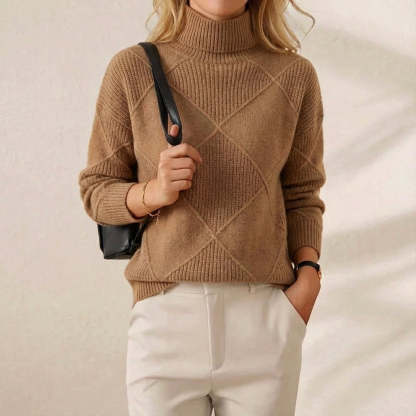Cotton Sweater with Woven Diamond Structure