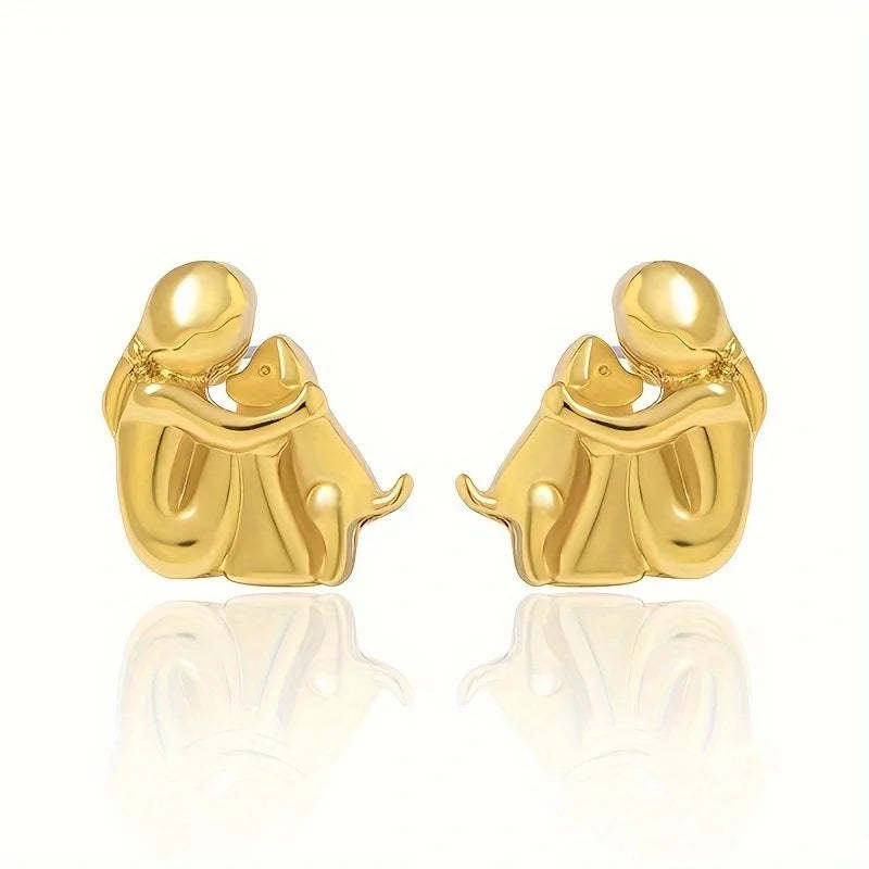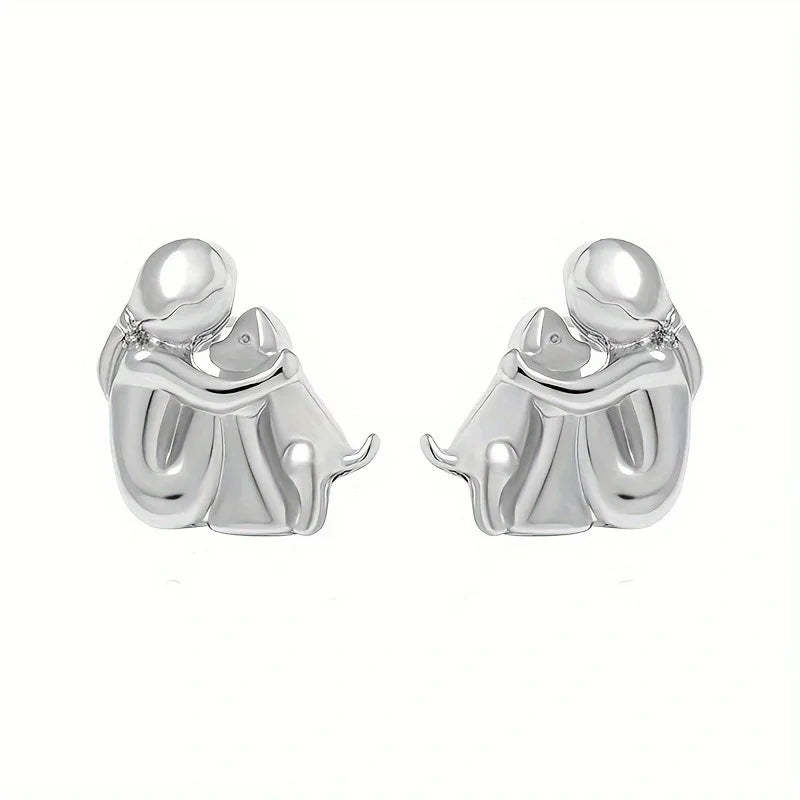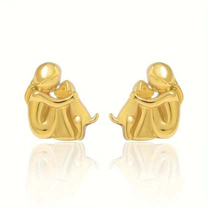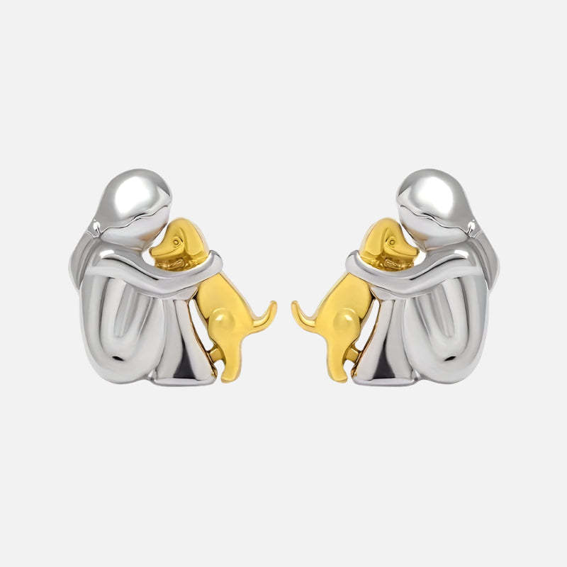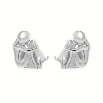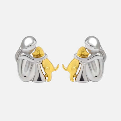 Capture the pure joy of unconditional love with these delicate stud earrings featuring a girl embracing her beloved dog. Crafted in lustrous two-tone silver and gold finish, these meaningful studs celebrate that special bond between you and your four-legged friend – a perfect reminder of the heart's most faithful companion.
