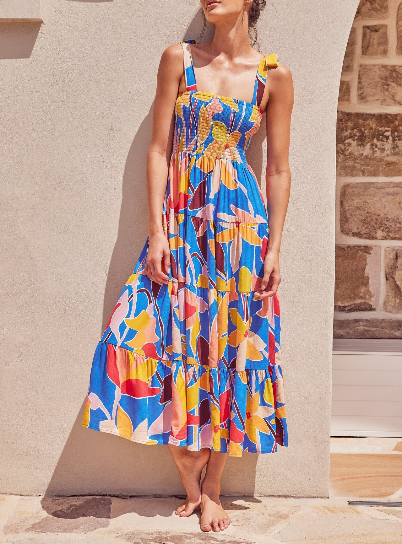 Stylish Floral Long Spaghetti Strap Dress