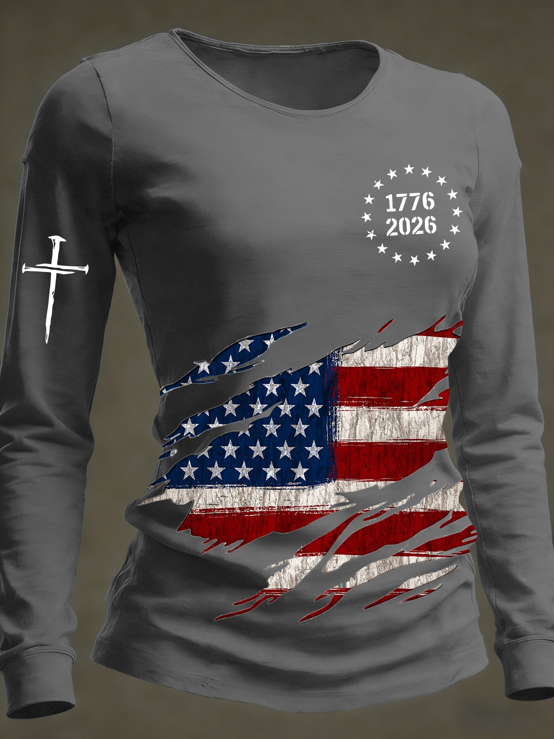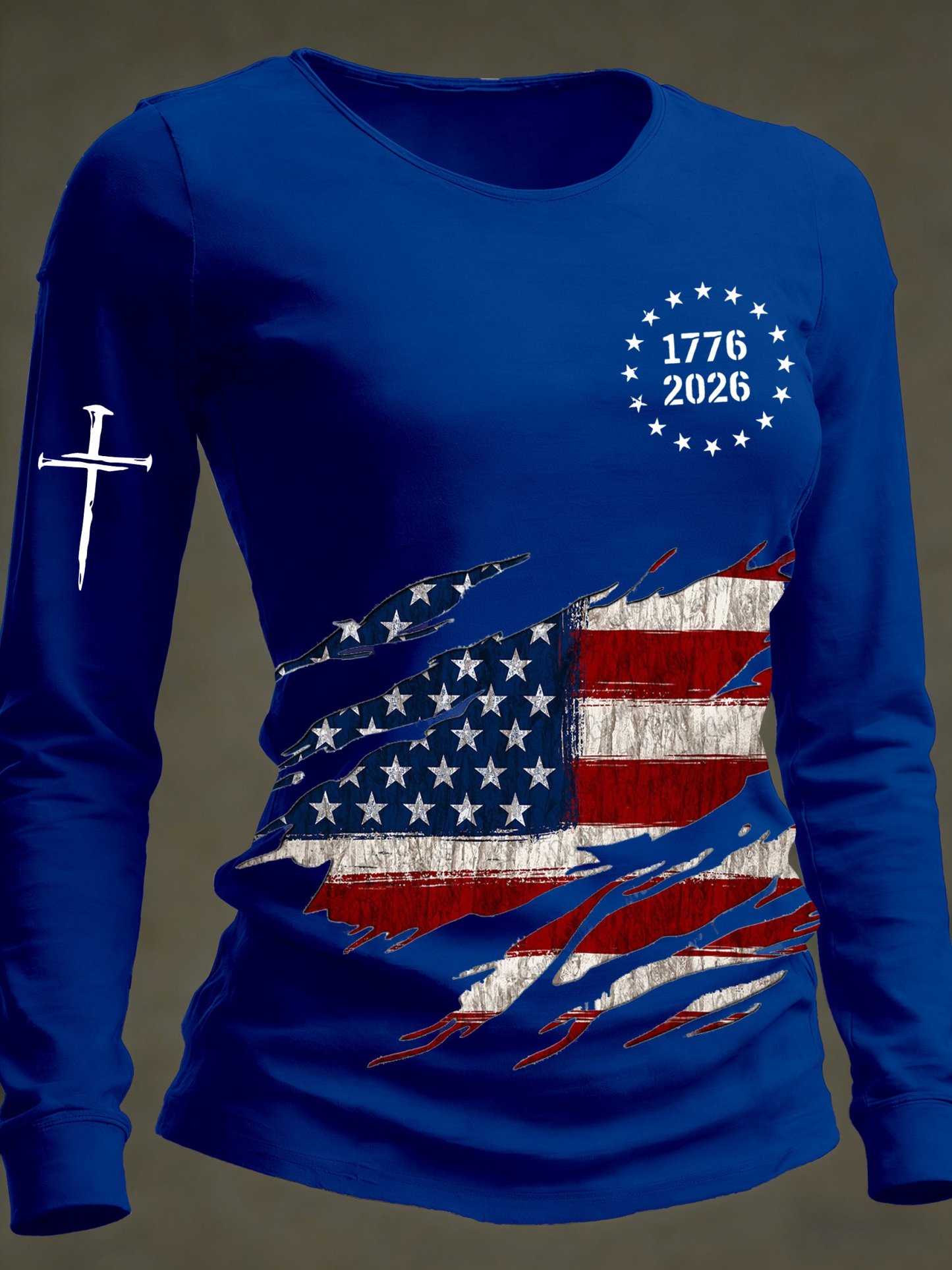 Women's 250th Anniversary National Flag Print Casual Long-Sleeved T-Shirt