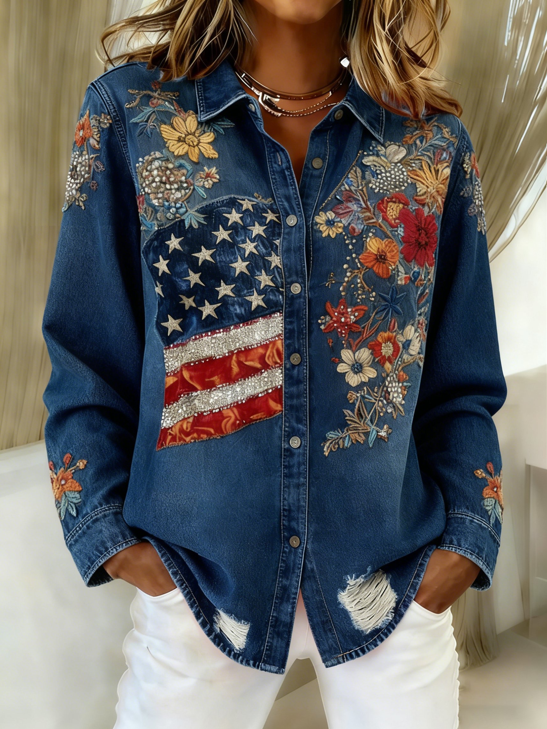Women'S Casual American 250th Anniversary Commemorative Printed Shirt