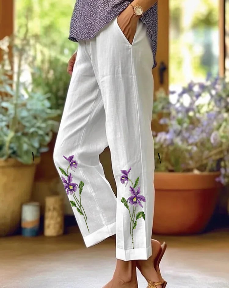 Women's Art Floral Loose Casual Pants (With Pockets)