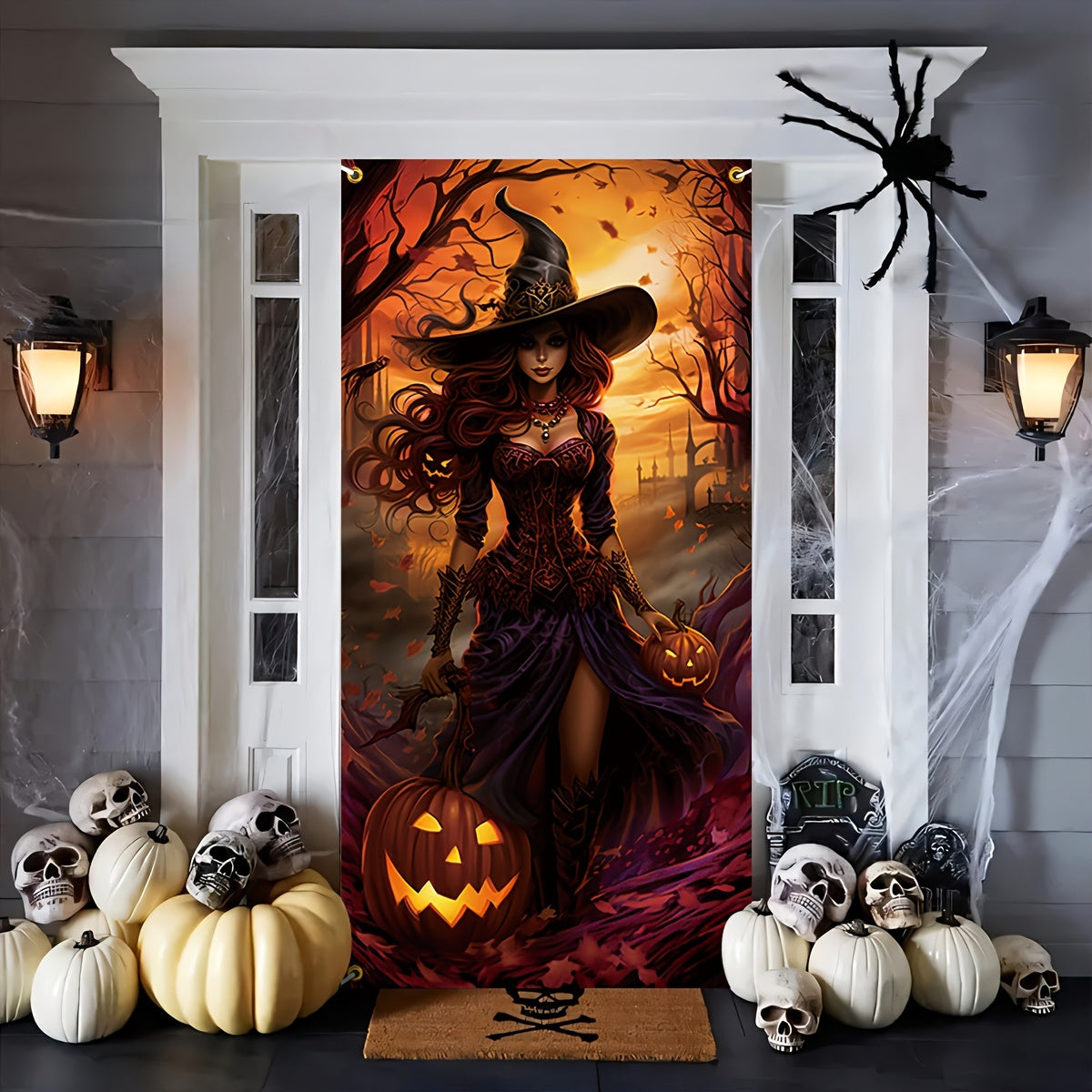 Bring spooky charm to your home or garden with this high-quality polyester witch door banner. Perfect for indoor or outdoor use, it instantly elevates your Halloween ambiance without needing any power.