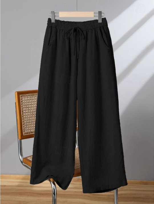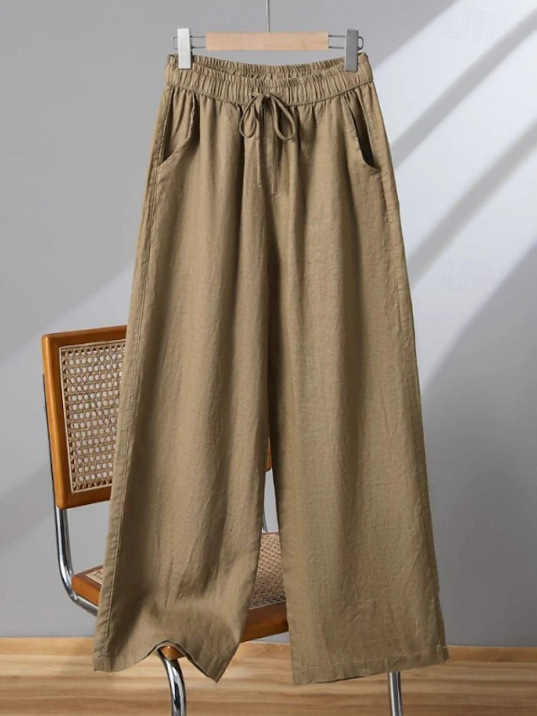 Elastic Casual Solid Color Cotton Linen Wide Leg Pants
